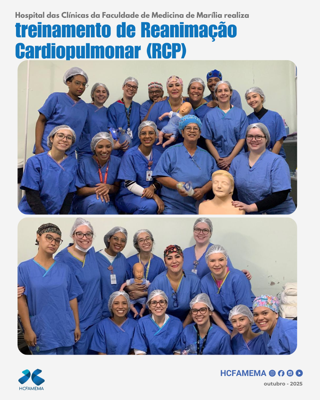 O Serviço de Educação em Saúde do HCFAMEMA organizou um treinamento de Reanimação Cardiopulmonar (RCP) Adulto e Pediátrico para os profissionais de enfermagem do Centro Cirúrgico do Hospital Materno Infantil. A capacitação ocorreu nos dias 02 e 09 de outubro…