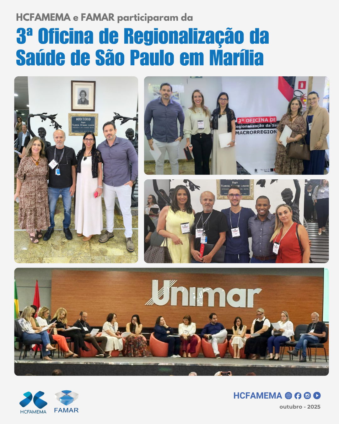 O Hospital das Clínicas da Faculdade de Medicina de Marília (HCFAMEMA), a FAMAR e o Centro de Reabilitação Lucy Montoro de Marília estiveram presentes no 3º Ciclo de Oficinas Macrorregionais das Redes Regionais de Atenção à Saúde (RRAS) 10, nos…
