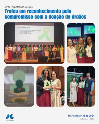 A Organização de Procura de Órgãos do HCFAMEMA recebeu o reconhecimento pelo compromisso com a doação de órgão em 2025, durante o IV Encontro das Comissões Intra-Hospitalares de Doação de Órgãos e Tecidos para Transplante do Estado de São Paulo (ECESP). O evento é organizado pela Secretaria Estadual de Saúde e Central Estadual de Transplantes paulista.