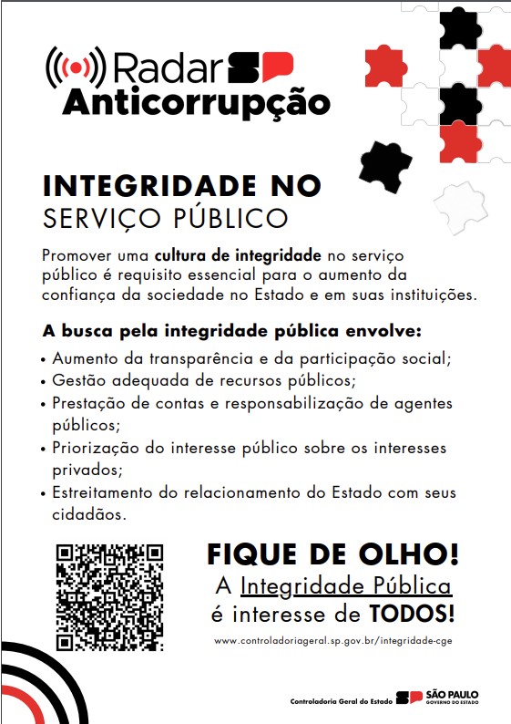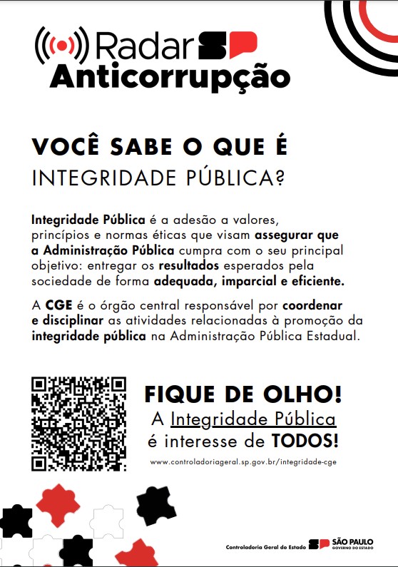 O Governo do Estado de São Paulo, por meio do Decreto nº 67.683, de 3 de maio de 2023, instituiu o Plano Estadual de Promoção de Integridade que define as diretrizes e sistematiza ações voltadas ao fortalecimento dos mecanismos internos de prevenção de irregularidades administrativas, de práticas de corrupção e de desvios éticos, promovendo um ambiente de trabalho íntegro no âmbito dos órgãos e entidades do Poder Executivo estadual. Para a concretização de sua finalidade, o decreto também estabelece que os órgãos e entidades da Administração Pública paulista elaborem e implementem seus Programas de Integridade.